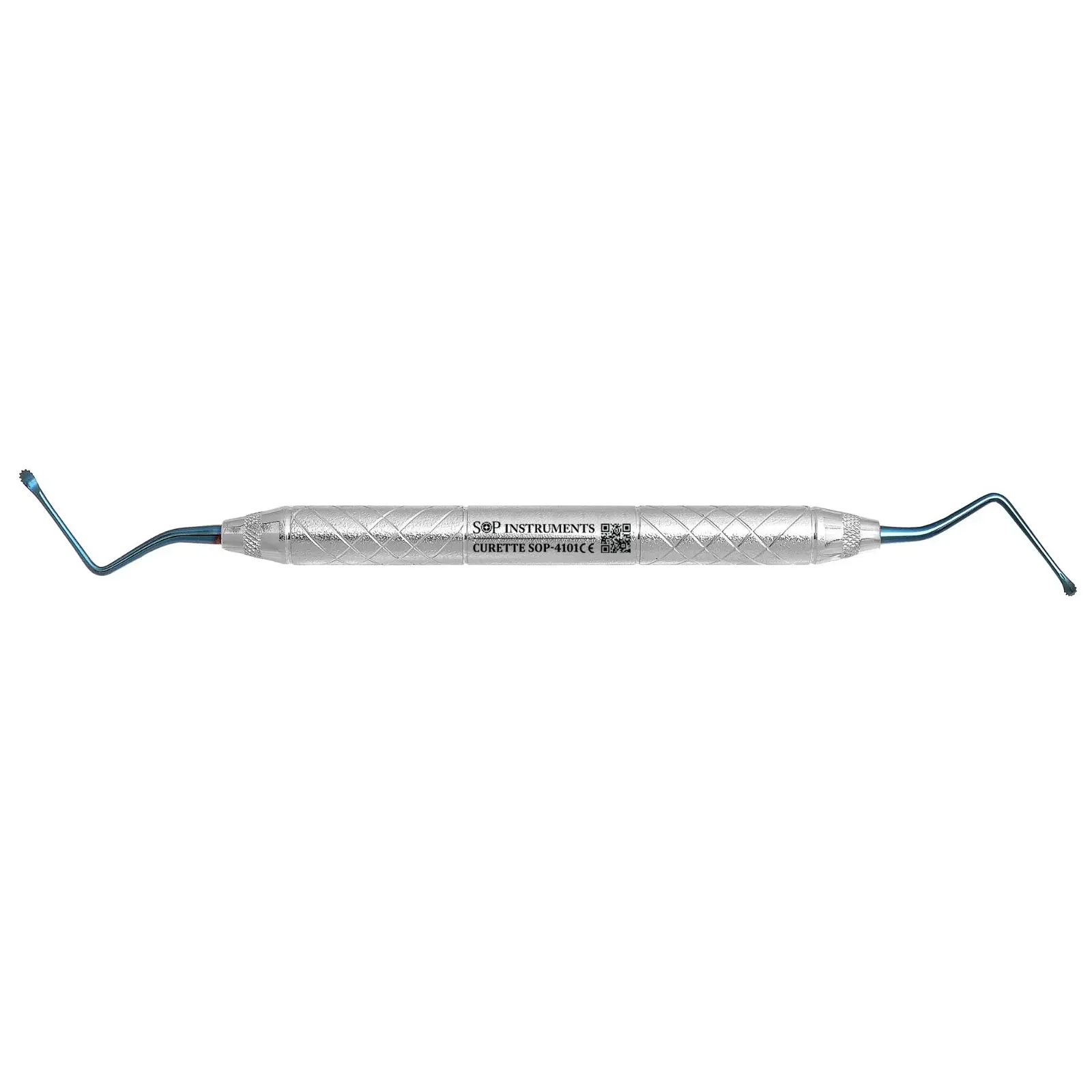 • Lucas bone curette serrated 2.0mm double ended blue surgical dental instrument full view